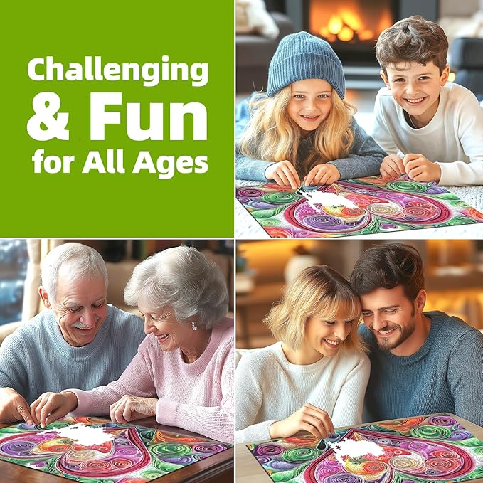 - ๐จ Engaging and Challenging: Dive into hours of entertainment with colorful spiral patterns and intricate heart designs. This jigsaw puzzles 1000 pieces not only provides a joyful escape for stress relief but also enhances pattern recognition skills, making it a great activity for both solo puzzling and group fun. โadult games for game night.