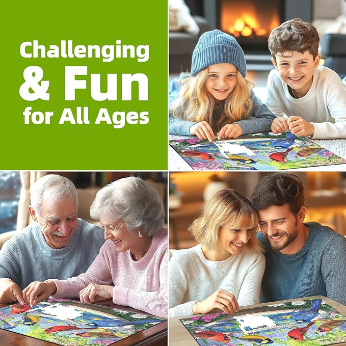 - ๐ผ๏ธ Stunning Display Piece: adult puzzles 1000 pieces Measuring approximately 27 x 20 inches when completed, this puzzle can be framed and displayed as a beautiful piece of art. Celebrate the charm of garden birds in their natural habitat and add a touch of natureโs beauty to your home. Plus, if you encounter any missing pieces or quality issues, weโll arrange for a replacement right away.