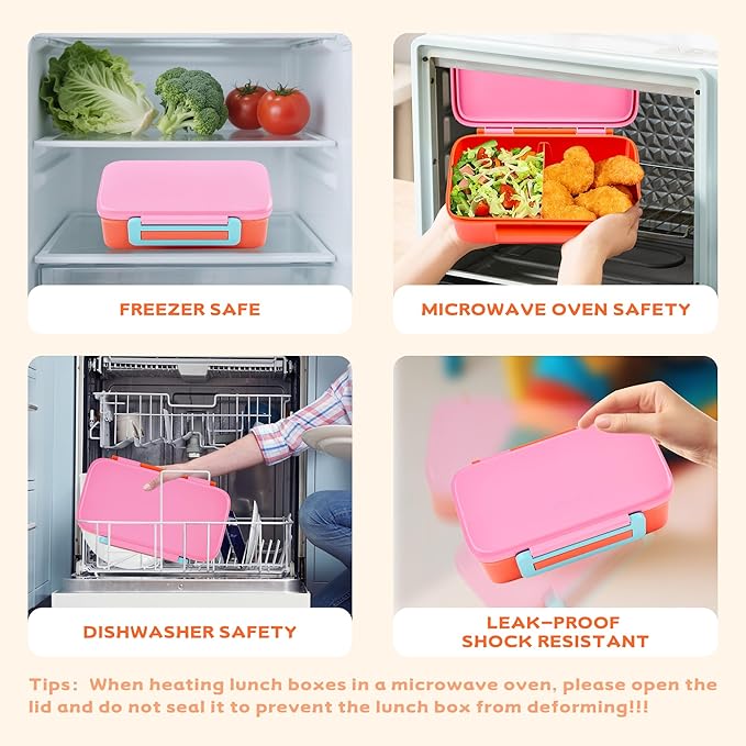 - Easy to Clean- Unlike other popular bento lunch boxes for kids, freezer safe: ≧4℉. The dishwasher was safe; the cover must be washed by hand to avoid deformation caused by high temperature and high pressure, The rubber seals are all removable, and its smooth interior is more accessible to wipe clean than other models so that you can wash it thoroughly every day.