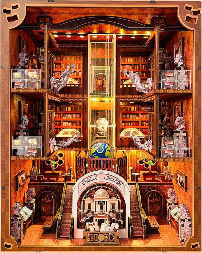 - Exquisite Design: Elevate your space with our intricately crafted book nook set, featuring a stunning three-story library and a charming sightseeing elevator. This miniature masterpiece captures the timeless elegance of a global library, making it a perfect decorative accent for bookshelves, desks, or reading corners.