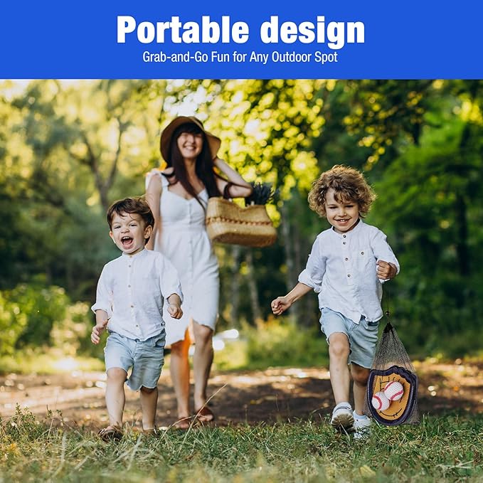 - Baseball-Inspired Learning Play: Our catching ball set's palm-shaped paddle resembles a baseball glove, easing grip tension while teaching accuracy. A fun outdoor toy that helps kids explore early baseball skills through active toss and catch
