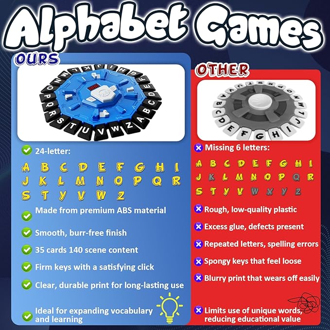 Word Game with LED Display, Alphabet Games, Fast-Paced Family Board Game for Learning Playing Game Gifts for Ages 3+ (Blue)