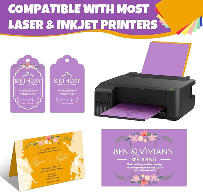 - 【Premium Quality】 – This paper 8.5 x 11 inch colored cardstock features a sturdy 180 gsm weight, ensuring compatibility with most laser and inkjet printers. Crafted from high-grade virgin wood pulp, it is acid-free and long-lasting, delivering vivid colors while reducing ink consumption—especially for full-background printing. The thick, durable paper resists fading and tearing, while its smooth, refined finish offers an exceptional printing and handling experience.