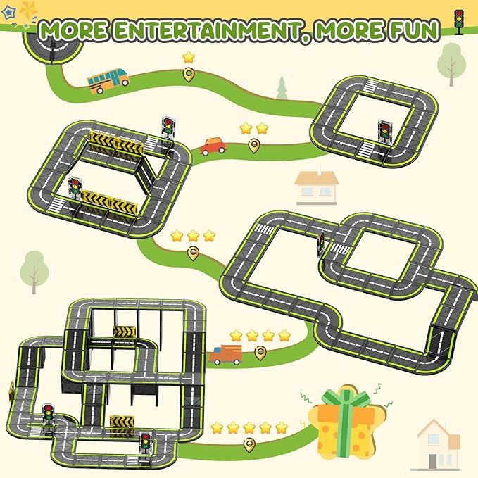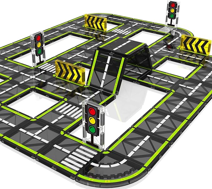 - Magnetic Tiles Road Set: our expanding set is entirely composed of 24pcs magnetic road tiles, including 20 road tiles, 2 traffic lights, and 2 traffic sign. Kids can directly assemble a complete road racing track using our magnetic road tiles set, let kids continuously explore new road designs and architectural plans, kids can add a creation and inspire their imagination to kids' playtime, keeping their interest and creativity alive.