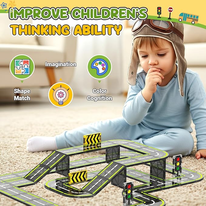 - Ideal Gift for Kids: Our magnetic tile road building set features an innovative design, vibrant colors, and diverse shapes that unlock endless possibilities for young children's creativity and imagination. It helps develop hand-eye coordination while sparking imaginative thinking and creative expression - making it an ideal gift for children aged 3-5, 5-7, and 6-8 years old. Perfect for birthdays, Easter celebrations, Christmas surprises, Thanksgiving presents, and various special occasions.