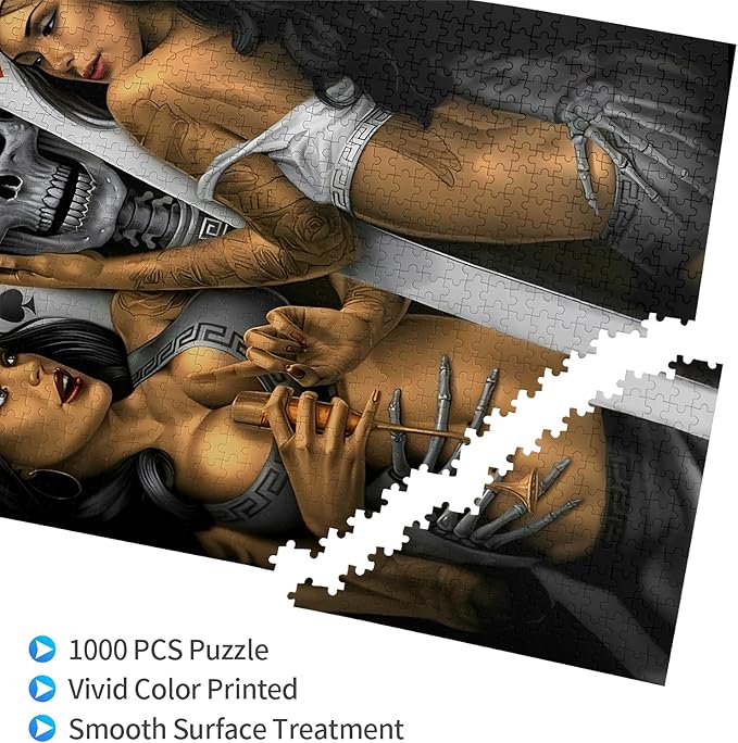 Challenge 1000 Pieces Premium Quality Wood Jigsaw for Adults,Skull King Playing Card,Brain Challenge Educational Game Relaxation Pastime Puzzle Size:29.5X19.7IN and 1:1 Original Picture Poster