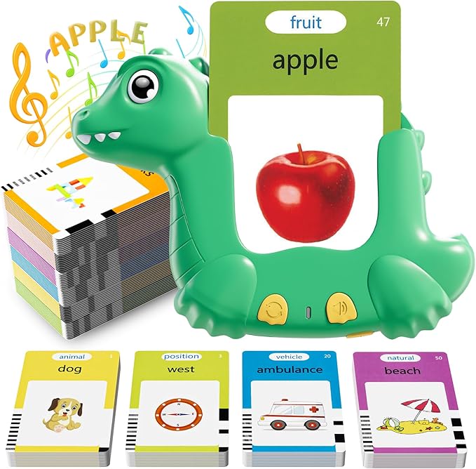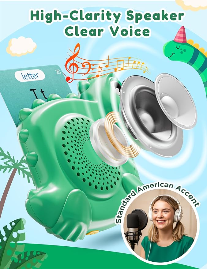 - Sturdy Talking Flash Cards – Designed as a cute dinosaur, this pocket speech for toddlers is made of sturdy ABS material to withstand drops. The flashcards are tear-resistant and wrinkle-proof, ensuring long-lasting use. A great educational toy for curious little hands