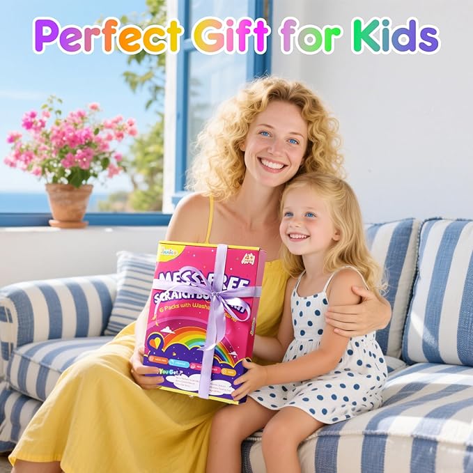 - Beautifully Packaged Gift Set: Presented in an attractive gift box with a cheerful design, this set makes an impressive present for Thanksgiving, Halloween, Easter, birthdays, holidays, and Christmas or special occasions. Boys and girls will love the magic rainbow colors beneath each scratch! Great for rainbow scratch paper enthusiasts and creative kids.