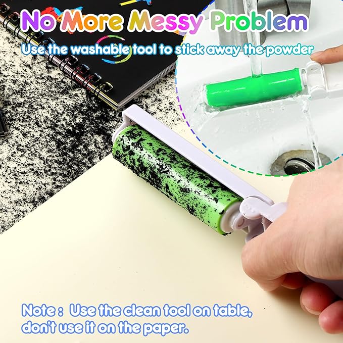 - Innovative Mess-Free Tool: JMMICO scratch art for kids set includes 6 packs scratch books & 1 clean tool & 6 wooden stylus & 4 colorful stencils & 1 sticker. The special washable sticky roller effortlessly collects all scratch debris. No more messy scraps or frustrating cleanup—just pure creative fun! Non-toxic, odorless and ASTM F963 certified.