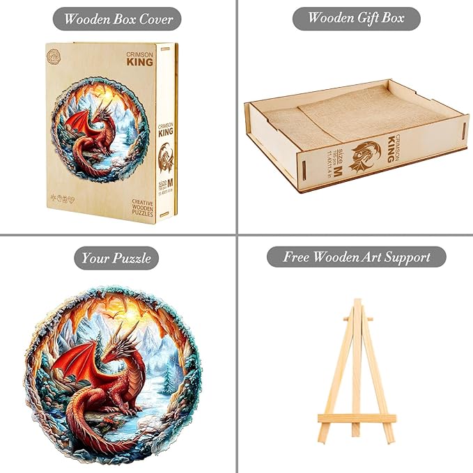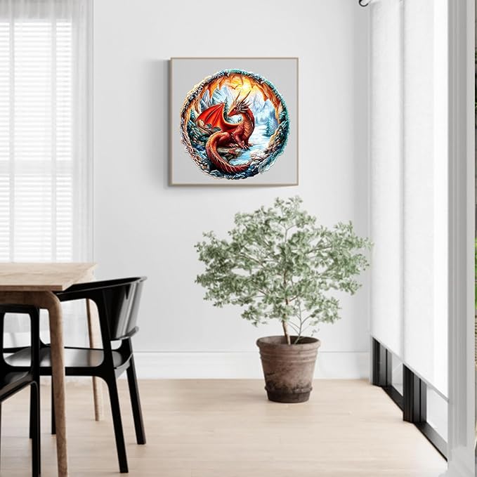 KAAYEE Wooden Puzzles for Adults, 3D Visual Effect Cave Dragon Wooden Jigsaw Puzzle Unique Shape Wood Puzzle Adult, 3D Effect Flat Puzzle Birthday Family Games (M-11.4 * 11.4 in-195pcs)