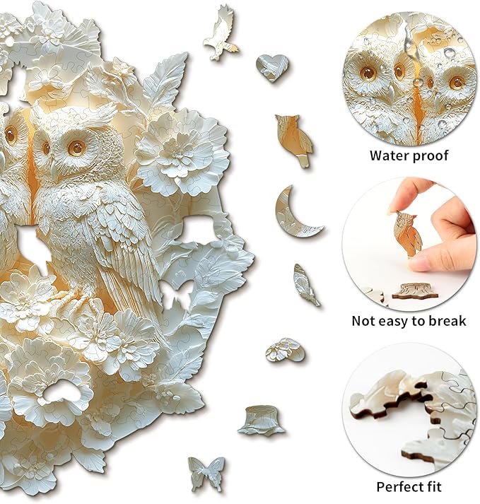 KAAYEE Wooden Puzzles for Adults, Couple Owl Wooden Jigsaw Puzzle Unique Shape Wood Puzzle Adult, 3D Visual Effect Flat Puzzle Birthday Family Games (M-11.4 * 10.6 in-177pcs)