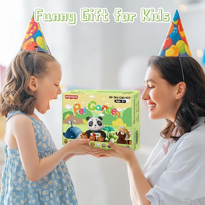 - 【modeling clay for kids】:This air dry clay kit includes 12 individually wrapped boxes of 4-color clay and 5 sculpting tools. Each box of clay has a simple 6-step tutorial on the back to squish into a cute animal pet (bald eagle, American bison, red fox, grey wolf, panda ). This magic model clay allows kids to create a colorful pet garden, having endless fun!