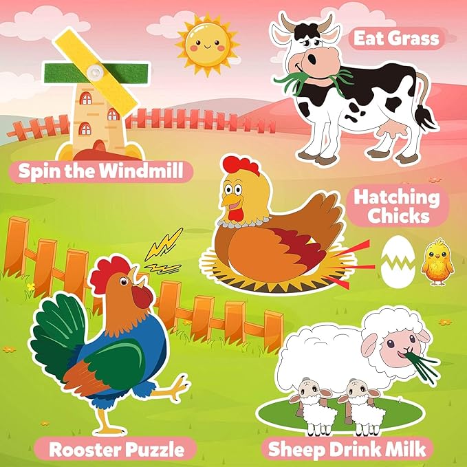 - Develop Cognitive & Sensory: The baby busy book adopts the Montessori educational method. Explore a world of shapes, colors, farm animals, fruits, vegetables. With interactive features like finger toys, spinning windmills, feed the cows grass engage sensory development and cognitive skills.