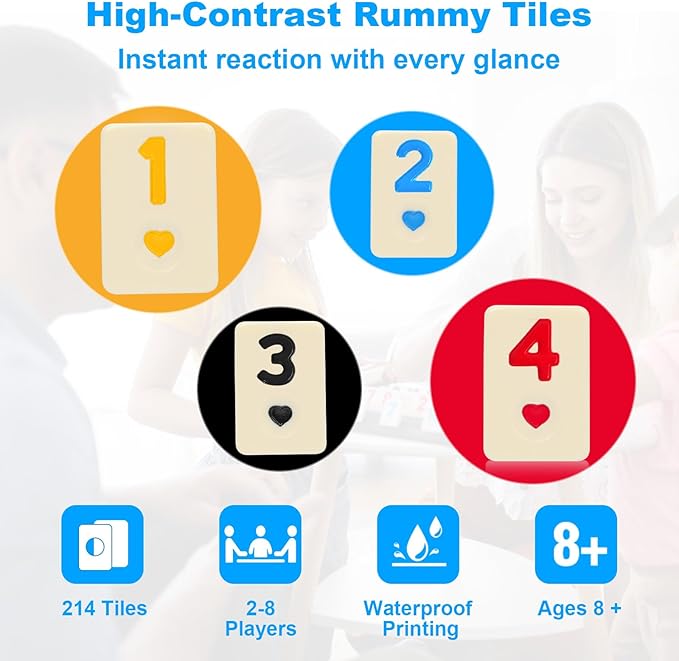 - 【Develops STEM Skills】The rummy tiles game is easy to learn but requires strategy and tricks, can develop sequencing, pattern recognition, and planning skills, making it an excellent choice for both entertainment and learning