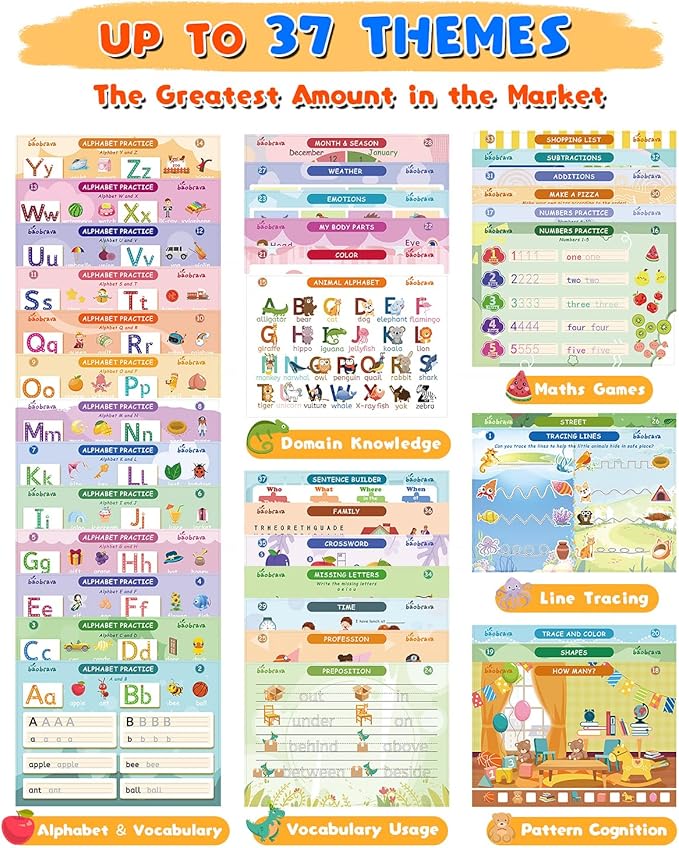 - ๐ ๐ฅ๐ถ๐ฐ๐ต๐ฒ๐๐ ๐ฆ๐๐ฒ๐ฝ๐๐ถ๐๐ฒ ๐ง๐ต๐ฒ๐บ๐ฎ๐๐ถ๐ฐ ๐๐ฑ๐๐ฒ๐ป๐๐๐ฟ๐ฒ๐ ๐ณ๐ผ๐ฟ ๐ฏ-๐ด ๐ With 37+ themes, our Montessori-inspired learning tool guides preschoolers on two paths: Physical Mastery (from lines to alphabets to real-world knowledge) and Creative Thinking (from shapes to math games). Perfect for ages 3-8, this versatile toy grows with your childโfrom their first scribbles to confident writing skills. Itโs an excellent addition to any preschool learning activities collection and supports writing practice for kids age 3-5 and 6-8.