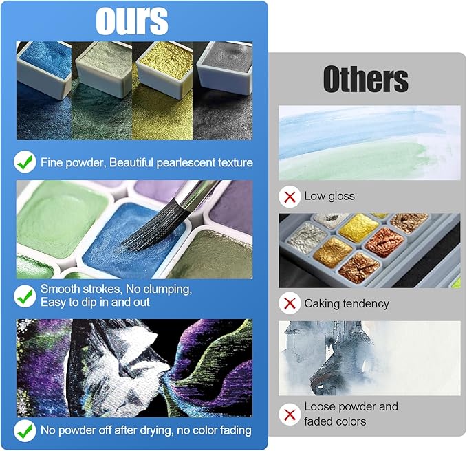 - 【Smooth Strokes, No Powder Off After Drying】: Our watercolor paints are fine powder with smooth strokes that won't clump. The powder will not fall off after drying, making the artwork shine forever