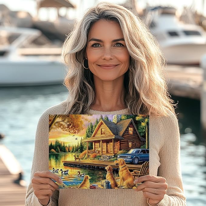 GLOBLELAND 300Pcs Lake Dog Wooden Jigsaw Puzzles for Adults 11.22x15.16inch Colorful Golden Retriever and Duck Wood Puzzles Holiday Birthday Gifts