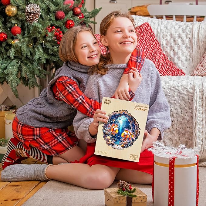 - Clownfish Journey Wooden Puzzle: This wooden jigsaw puzzle takes inspiration from nature, featuring irregularly shaped animal pieces. The original hand-drawn designs not only provide a puzzle-solving experience but also serve as unique home décor