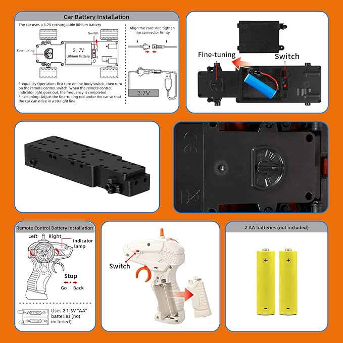 - 【Rechargeable & Long-Lasting Play】No child will refuse a toy that moves.This sports car building set is equipped with a 3.7v/350mAh high-capacity rechargeable lithium-ion battery (rechargeable battery*1 included),2 AA batteries for 2.4GHz remote control (AA batteries not included),and the optimal running time is up to 20 minutes.Let the racing car model toy move in all directions indoors and outdoors,move forward and backward freely,turn left and right freely, and bring unlimited fun to children