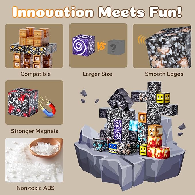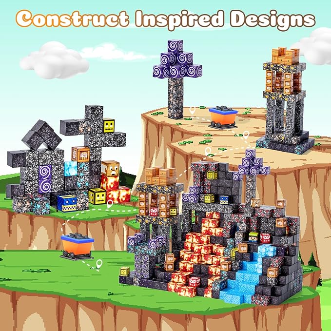 - 【Strong Magnets, Rock-Solid Creations 】 Secure magnetic connections keep lava towers, mining carts, and cave structures firmly in place. Perfect for imaginative adventures on the playroom floor, collaborative builds with friends, or travel-friendly entertainment.