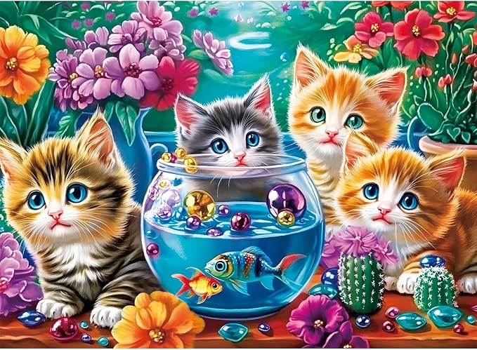 - 【Exquisite Printing, Stunning Details】Each 300-piece puzzle features vibrant colors and intricate details, from the adorable cats surrounding a fishbowl to the playful fish swimming inside. These jigsaw puzzles for adults and kids offer hours of fun and a rewarding experience.