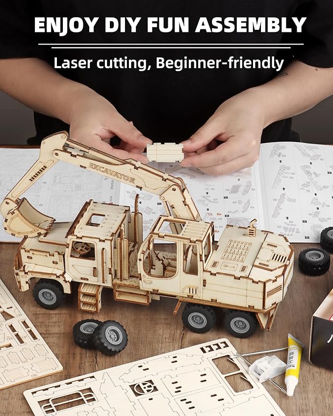 - Advanced Hands-on Experience – This 3D wooden puzzle meticulously recreates the structure of an excavator. It contains more than 177 laser-cut wooden parts, each carefully designed to provide an immersive 3D assembly experience. With an assembly time of about 3-4 hours, it is ideal for beginners.