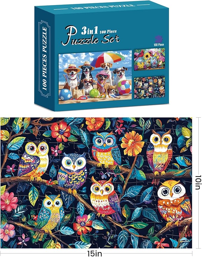 - ๐ฆ๐ฆ๐ Birds, Dogs & Owls 100 Piece Puzzle โ A Whimsical Celebration of Nature - In a cheerful outdoor scene, birds, dogs, and owls come together to revel in the wonders of summer. Every piece is a tribute to the magic of nature and the creatures who call it home.