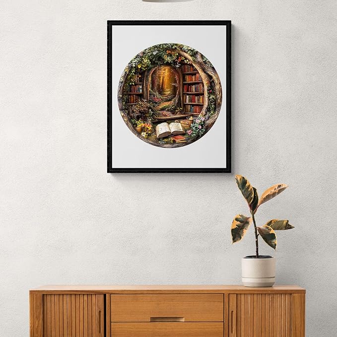 KAAYEE Wooden Puzzles for Adults, 3D Visual Effect Tree House Library Wooden Jigsaw Puzzle Unique Shape Wood Puzzle Adult, 3D Effect Flat Puzzle Birthday Family Games (L-13.4 * 13.4 in-295pcs)