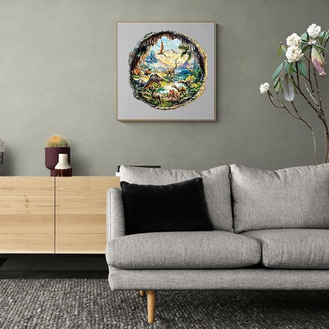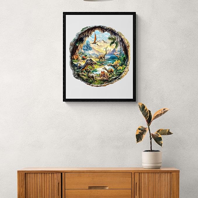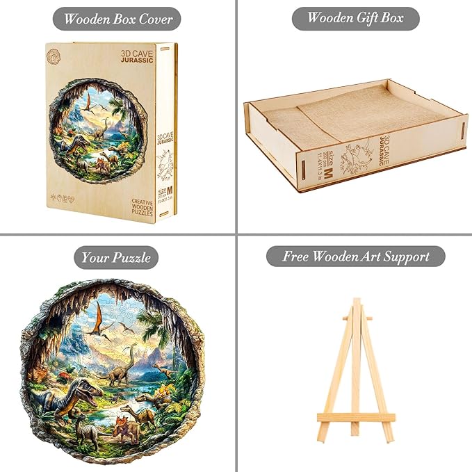 KAAYEE Wooden Puzzles for Adults, 3D Visual Effect 3D Cave Dinosaur Wooden Jigsaw Puzzle Unique Shape Wood Puzzle Adult, 3D Effect Flat Puzzle Birthday Family Games (M-11.4 * 11.3in-200pcs)