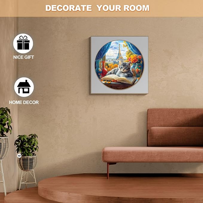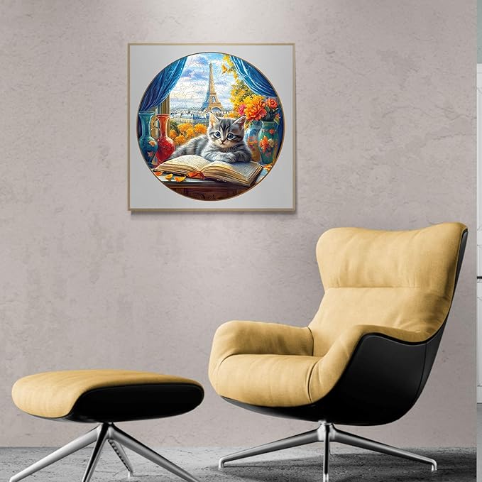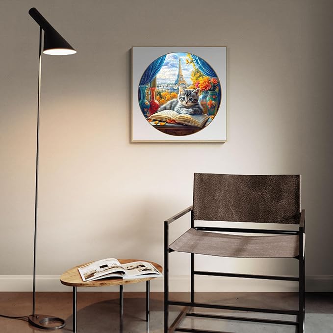 KAAYEE Wooden Puzzles for Adults, 3D Visual Effect Paris and Cat Wooden Jigsaw Puzzle Unique Shape Wood Puzzle Adult, 3D Effect Flat Puzzle Birthday Family Games (M-11.4 * 11.4 in-200pcs)