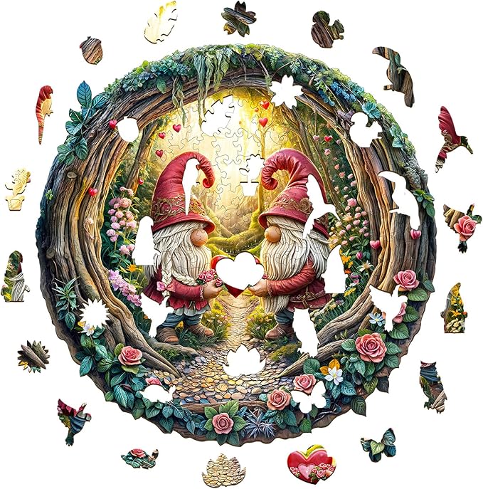 KAAYEE Wooden Puzzles for Adults, 3D Visual Effect Gnome Couple Wooden Jigsaw Puzzle Unique Shape Wood Puzzle Adult, 3D Effect Flat Puzzle Birthday Family Games (L-13.4 * 13.3in-300pcs)