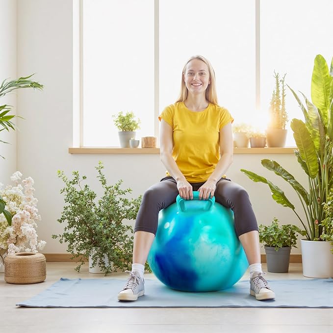- ✅ 【Quick Inflation & Portable Storage】:Includes a pump for fast setup—ready in minutes! Deflates easily, making this exercise ball with handle perfect for travel, gym sessions, or spontaneous backyard fun. Take the fun anywhere!