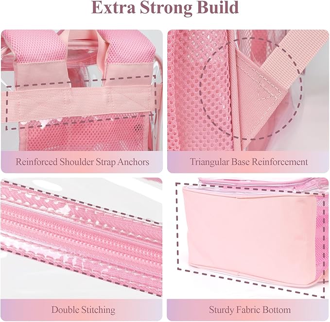 - Built to Last: This heavy duty clear backpack for girls is crafted from thick, high-quality PVC material with reinforced stitching, sturdy zippers, and a reinforced fabric bottom. Its durable construction withstands daily wear and tear, saving you from frequent replacements and providing long-lasting use