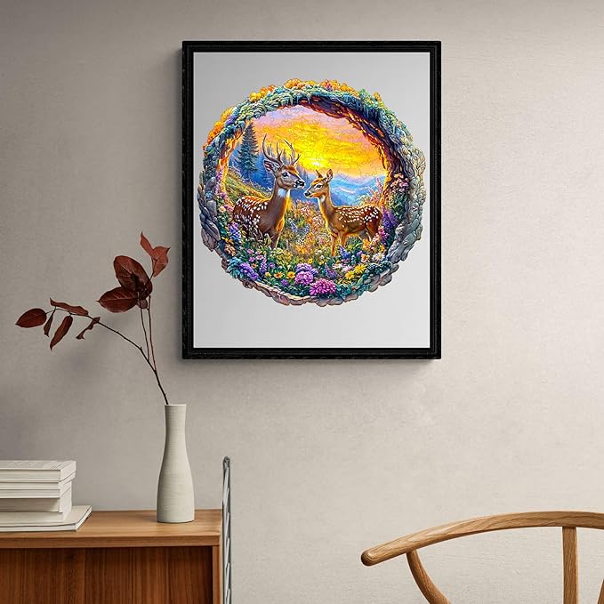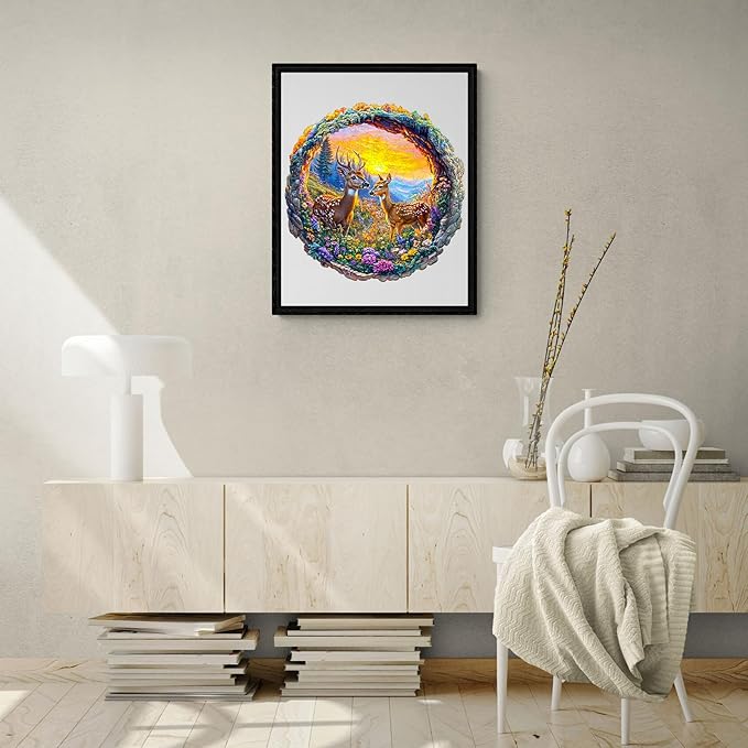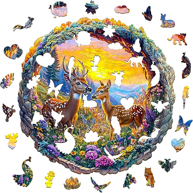 KAAYEE Wooden Puzzles for Adults, 3D Visual Effect Deer and Flowers Wooden Jigsaw Puzzle Unique Shape Wood Puzzle Adult, Birthday Gifts for Puzzle Lovers Family Games (M-11.4 * 11.3in-200pcs)