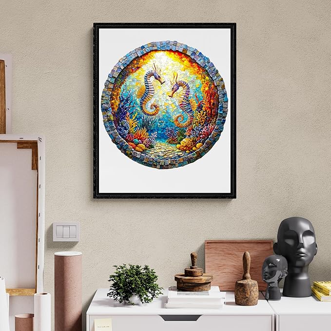 KAAYEE Wooden Puzzles for Adults, 3D Visual Effect Seahorses Wooden Jigsaw Puzzle Unique Shape Wood Puzzle Adult, Birthday Gifts for Puzzle Lovers Family Games (M-11.4 * 11.3in-200pcs)