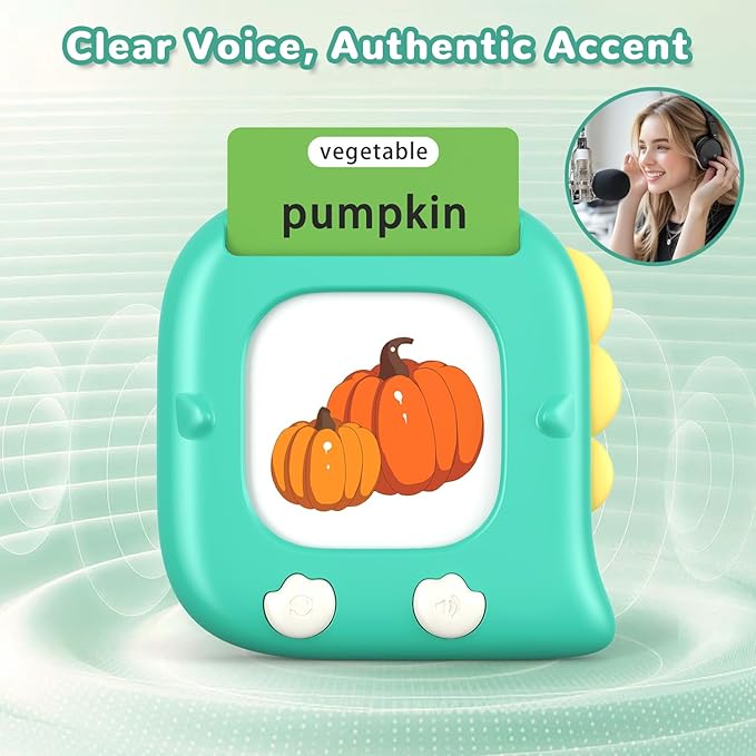 - [ Toddler Early Education Learning Toys ] - The toddler educational talking flash cards is designed as a cute dinosaur card reader which attracts children's interests and includes 254 sight words covering 15 subjects like letters, numbers(0-20), animals, vehicles, foods, fruits, vegetables, clothing, nature, colors, persons, jobs, shapes and etc. The speech therapy toy teaches kids to learn with Montessori way by all kinds of animals’ and vehicles’ sounds with a lot of fun and interests.