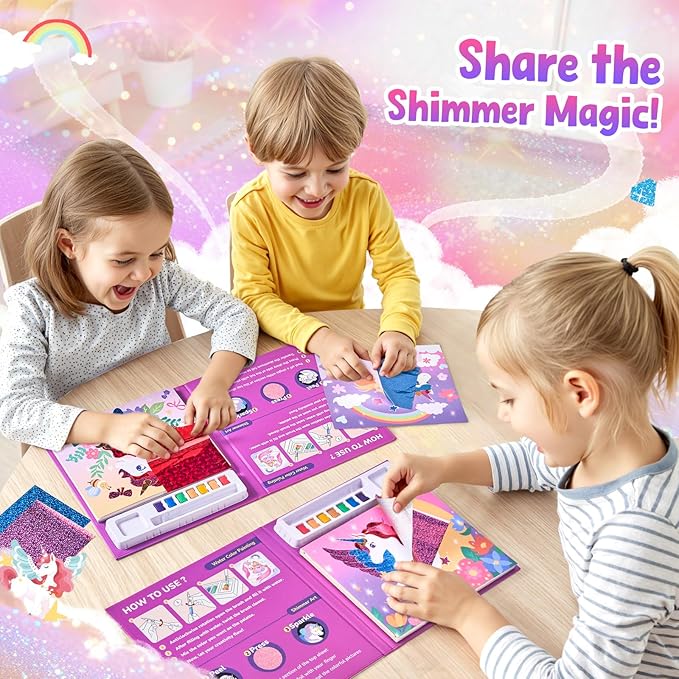 - Convenient Watercolor Book to Boost Focus and Artistry: This set includes 7 safe, easy-to-clean watercolor paints, with 5 featuring a sparkling effect for extra appeal. Kids can freely express themselves on 20 art pages, choosing single colors or blending hues to create Special and vibrant masterpieces. This activity not only sparks imagination but also helps improve concentration and artistic perception