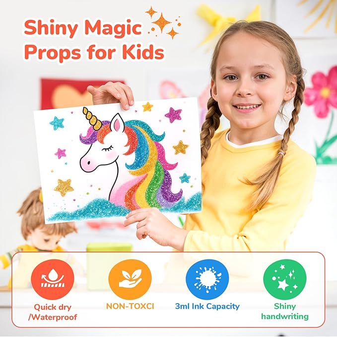 - 【50% MORE INK | LASTING CREATIVITY】 Packed with 3ml high-capacity ink (vs standard 2ml), our glitter markers deliver extended painting time and vibrant coverage. Ideal for large-scale projects where competitors' pens run dry.
