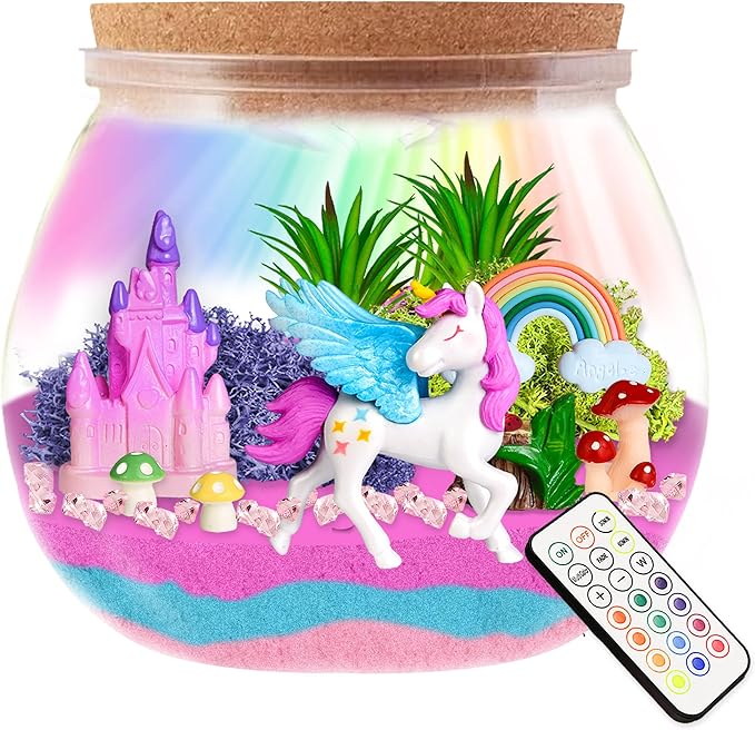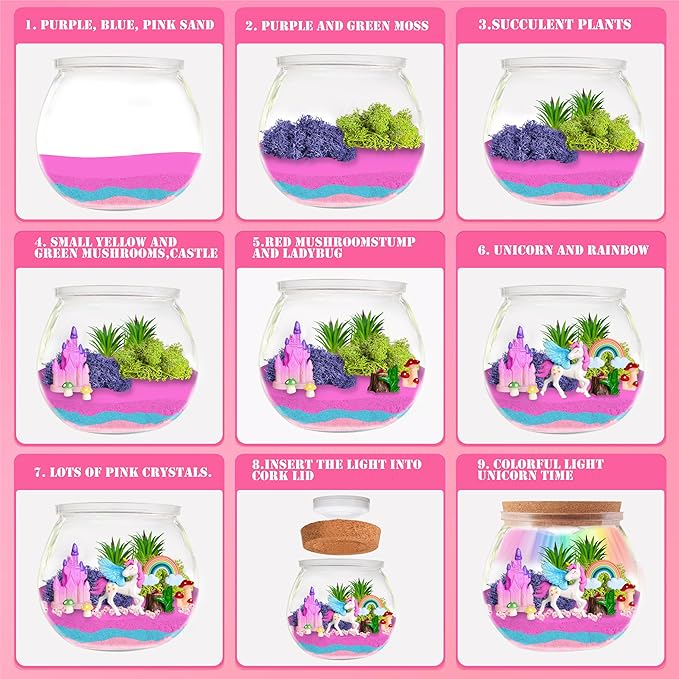 Unicorn Terrarium Kit for Girls - LED Light-Up DIY Arts and Crafts Night Light Gift for Kids Ages 4-12Night Light Birthday Gift DIY Arts and Crafts Kit for Kids