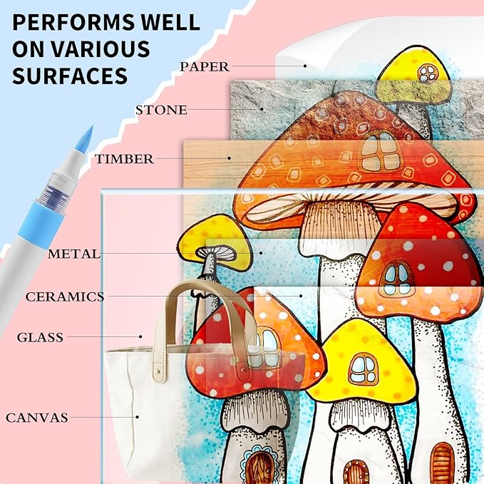 - Painting Essentials: The brush tip design allows ink to flow without pressing, enabling you to create 1-5mm lines by adjusting the angle. It easily creates cute designs on rock painting, canvas, fabric painting, plastic, wood, metal, ceramics, and more
