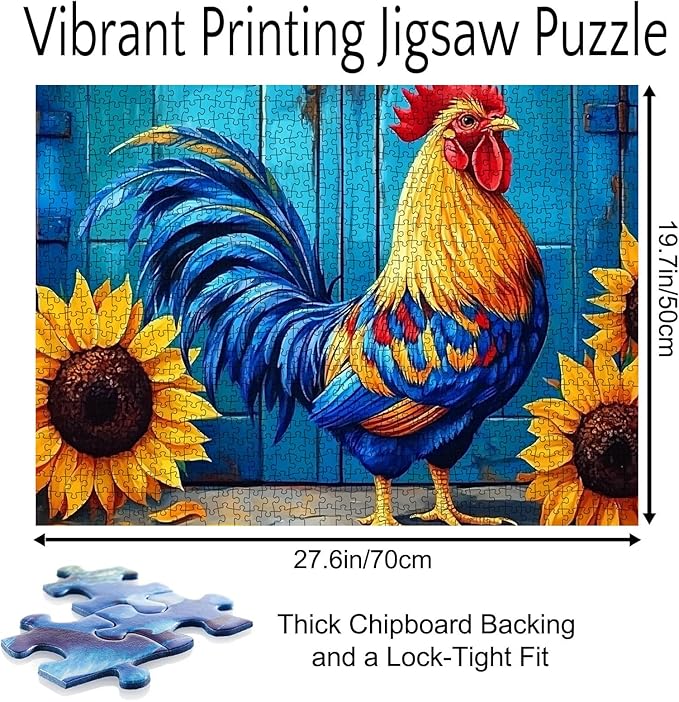 1000 Piece Jigsaw Puzzles for Adults, Blue Rooster with Sunflowers Jigsaw Puzzles,Cool Colorful Feather Rooster Puzzle,Challenging Family Activity Perfect for Game Nights,Puzzle as Wall Art Decor