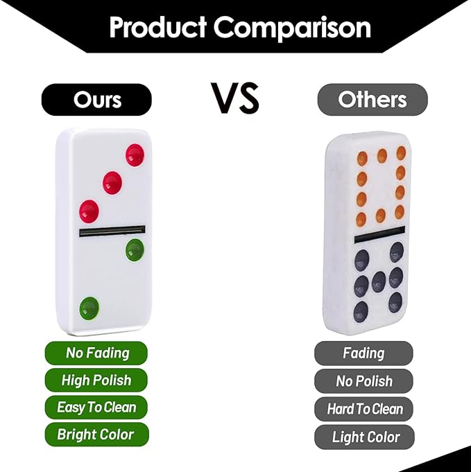 - High-Qulity Large Domino Tiles: Crafted from durable, BPA-free materials with a polished wood base, this Double 12 set features indented, well-painted dots that are easy to read and fade-resistant. Safe, smooth, and built for lasting gameplay