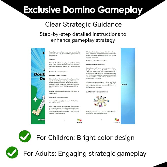 - Fun Game Easy for Beginners: The Mexican Train Dominoes offers timeless fun for ages 3+. A perfect way to bring families and friends together-ideal for game nights, sleepovers, parties, and holiday. Includes a beginner-friendly booklet for learning