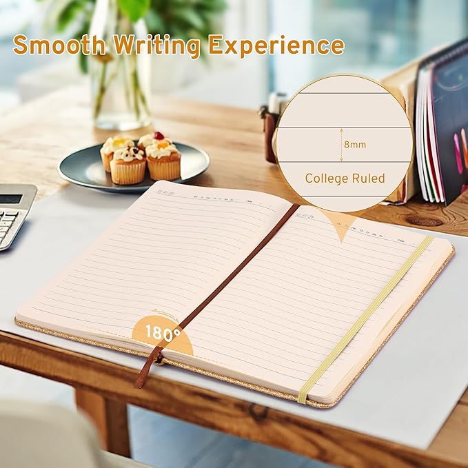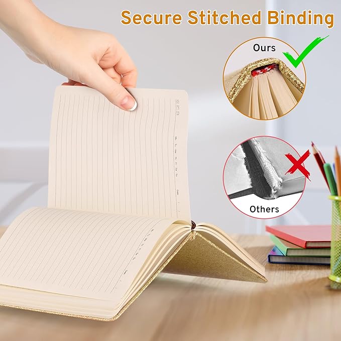 - Built for Daily Use: Comes with a sparkly ballpoint pen plus an extra refill, and features a waterproof cover, ribbon bookmark. Lays flat at 180° for easy writing—great for journaling, to-do lists, doodles, and stories.