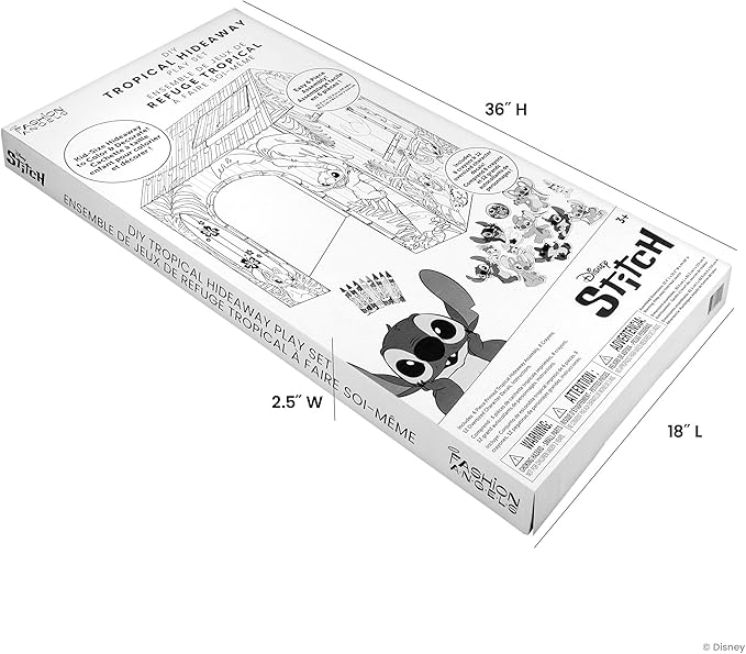 Fashion Angels Disney Stitch DIY Tropical Hideaway Playhouse, Color & Decorate Kid-Size Play Set with Crayons & Decals, Fun Craft Activity for Kids Ages 3+