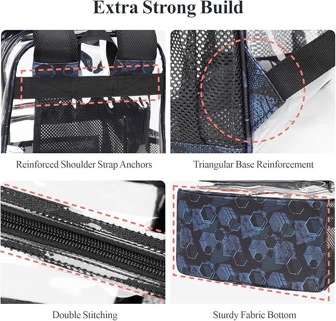 - Stylish Clear Backpack for Boys: This upgraded transparent school bookbag features sleek geometric patterns that let guys express their modern edge while meeting school policies. Perfect for trend-focused teens who love minimalist design