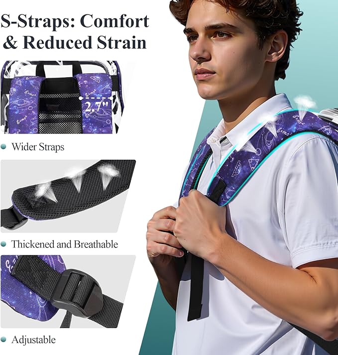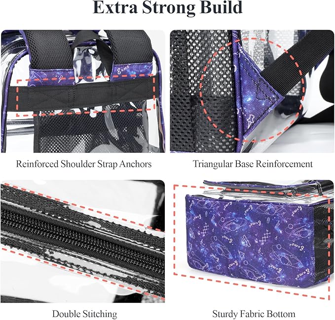 - Stylish Clear Backpack for Boys: This upgraded transparent school bookbag features dreamy starlit prints that let guys showcase their creative side while meeting school policies. Perfect for imaginative teens who love cosmic vibes