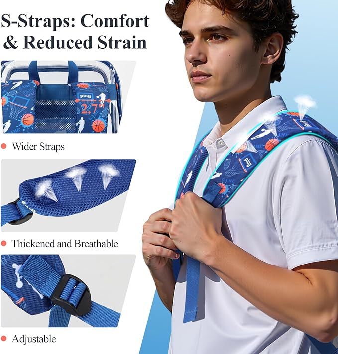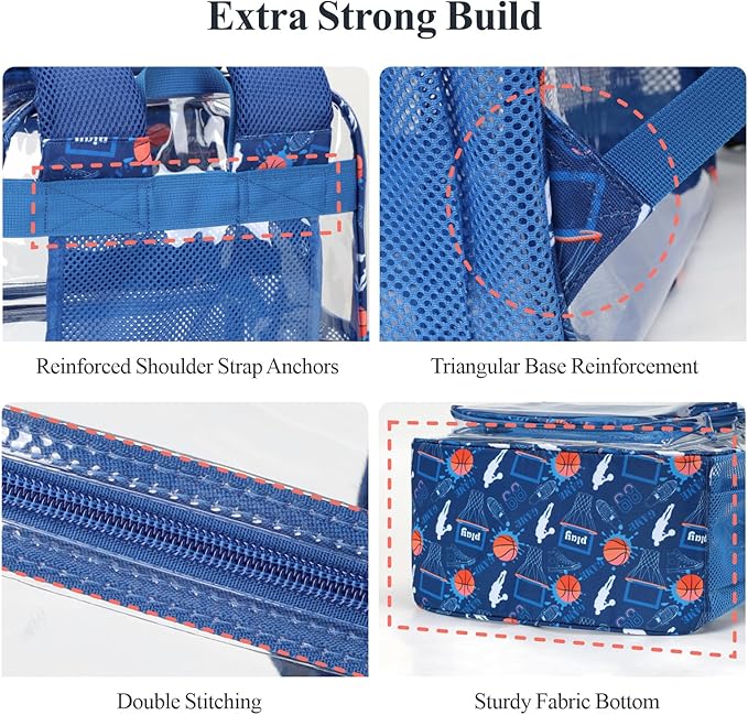- Stylish Clear Backpack for Boys: This upgraded transparent school bookbag features cool basketball prints that let guys express their style while meeting school policies. Perfect for sporty guys who want to stand out