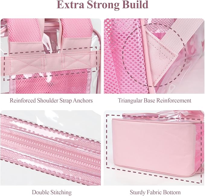 - Built Tough for Daily Use: Made with 0.5mm thick PVC, reinforced stitching, and sturdy zippers, this clear backpack heavy duty handles daily wear and tear. Supports up to 22 lbs (10 kg) and features a reinforced bottom for extra durability. Plus, it is rigorously tested and certified to meet strict CPSC safety standards
