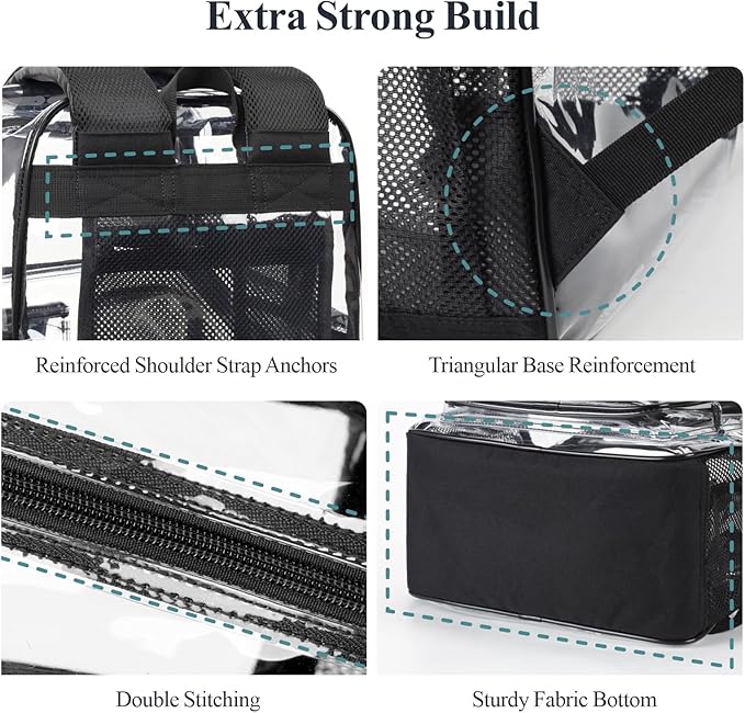 - Stylish & versatile: Leather trim adds a trendy touch to this transparent backpack. Works as a unisex clear bookbag for school, work, or weekend trips. Holds all essentials without extra bulk.